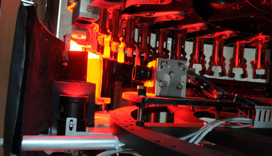 The machine use pressure to press and hold the bottle and drive the bottle rotate high-speed together with eyewinker. When bottle stop rotating liquid continue rotate under inertia. Industrial camera take photos of eyewinker’s trajectory and process with imaging processing system to