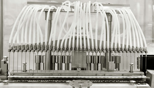 該聯動機組由QCK型立式超聲波清洗機、ASMR型熱風循環滅菌干燥機、DGFB型安瓿灌封機三臺單機組成。機組的功能及各項技術指標能符合我們藥典及GMP規范的水針針劑產品的生產,既可聯動生產,也可單機使用,聯動機組可完成網帶輸瓶、淋水、超聲波清洗、沖水、沖氣、預熱、烘干滅菌、冷卻、灌裝前充氮、灌裝、灌裝后充氮、封口等工序。QSGB型高速安瓿分裝聯動機組系列經改裝還可用于抗生素針劑的生產。