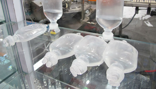與傳統(tǒng)的二步法制作輸液瓶相比,SPZC10型一步法吹瓶機(jī)具有污染小,能耗小等顯著特點。它能直接將PP粒子制作成輸液瓶,其中間過程是先將PP塑料粒子加熱制作成管胚,不等管胚冷卻就再次加熱,然后吹塑成輸液瓶,中間環(huán)節(jié)少,降低了輸液瓶污染的可能性,而且大大降低了能耗。SPZC10型一步法吹瓶機(jī)的污染小和低能耗是未來吹制輸液瓶的發(fā)展趨勢。
